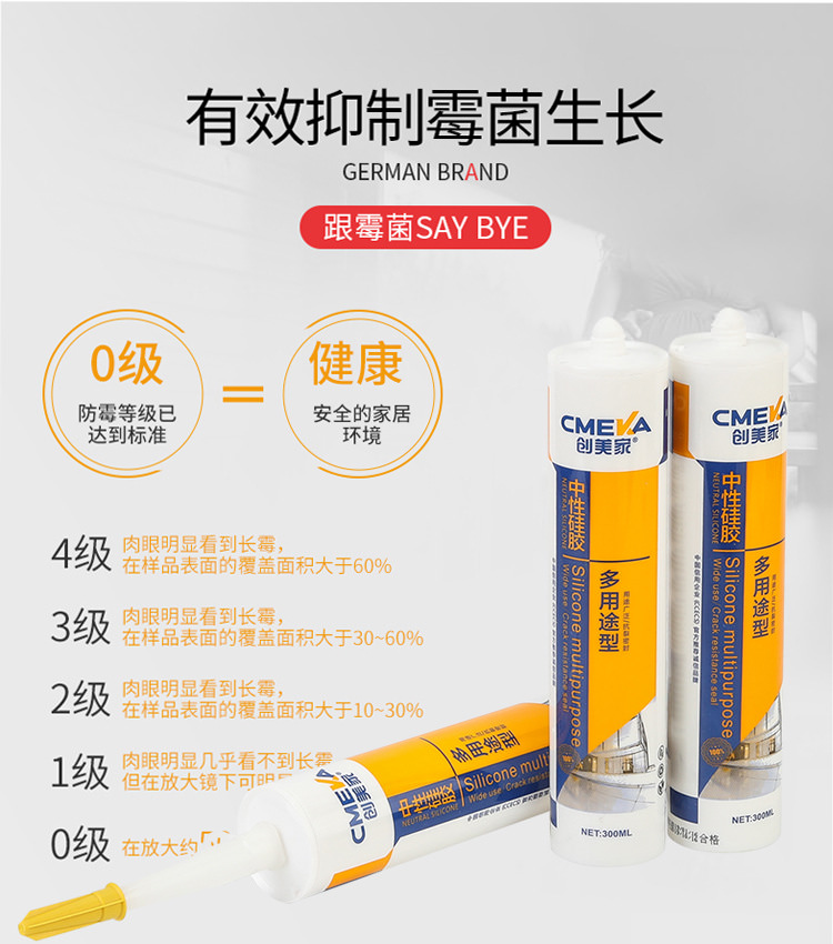 1、创美家-多用途系单组份、中性脱醇型、高模量、室温固化硅酮密封胶。